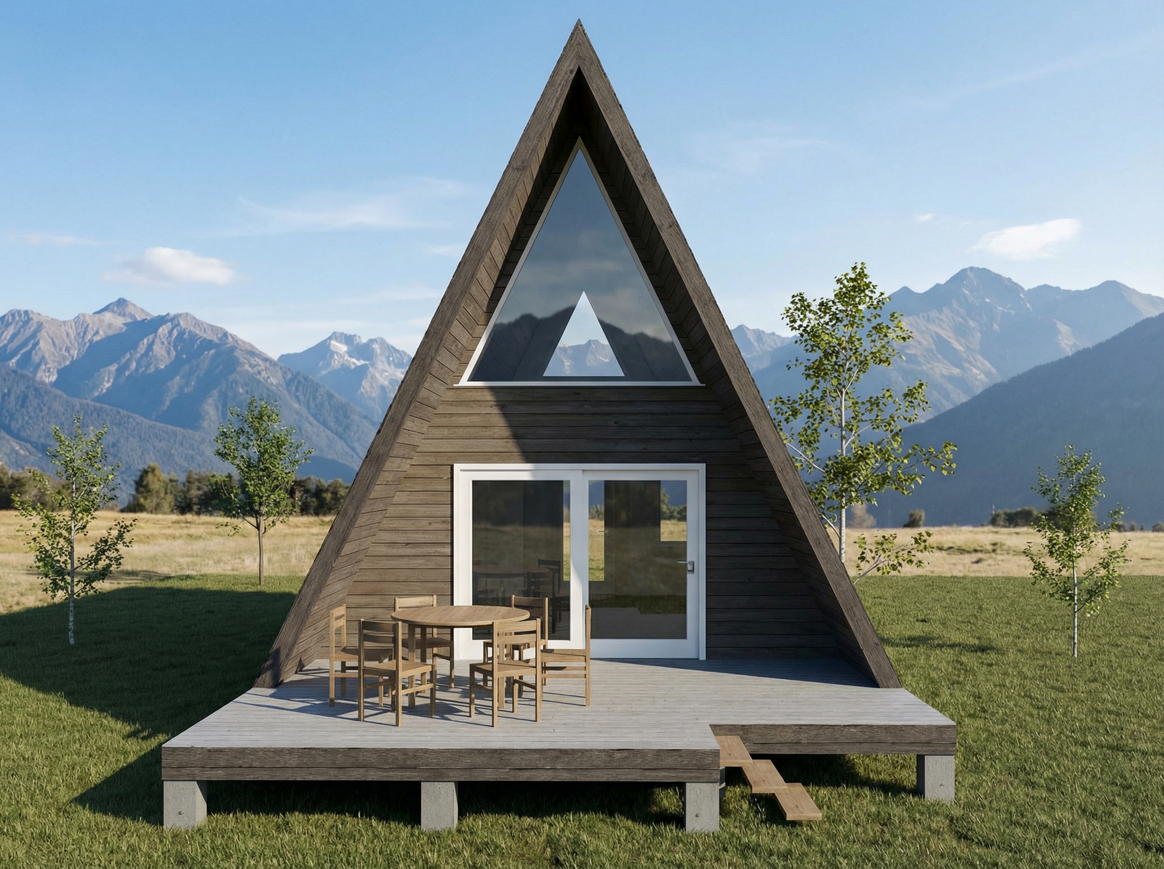 А-фрейм дом 6,0 х 6,5 м² — это компактное и современное решение для дачного или загородного проживания, сочетающее архитектурную выразительность с продуманной планировкой. Благодаря лаконичной форме, большие окна наполняют помещения светом и открывают красивые виды на природу, делая даже небольшое пространство визуально просторнее. Внимание к деталям в фасаде и простота конструкции позволяют дому гармонично вписываться в любой пейзаж — от лесных опушек до открытых равнин.