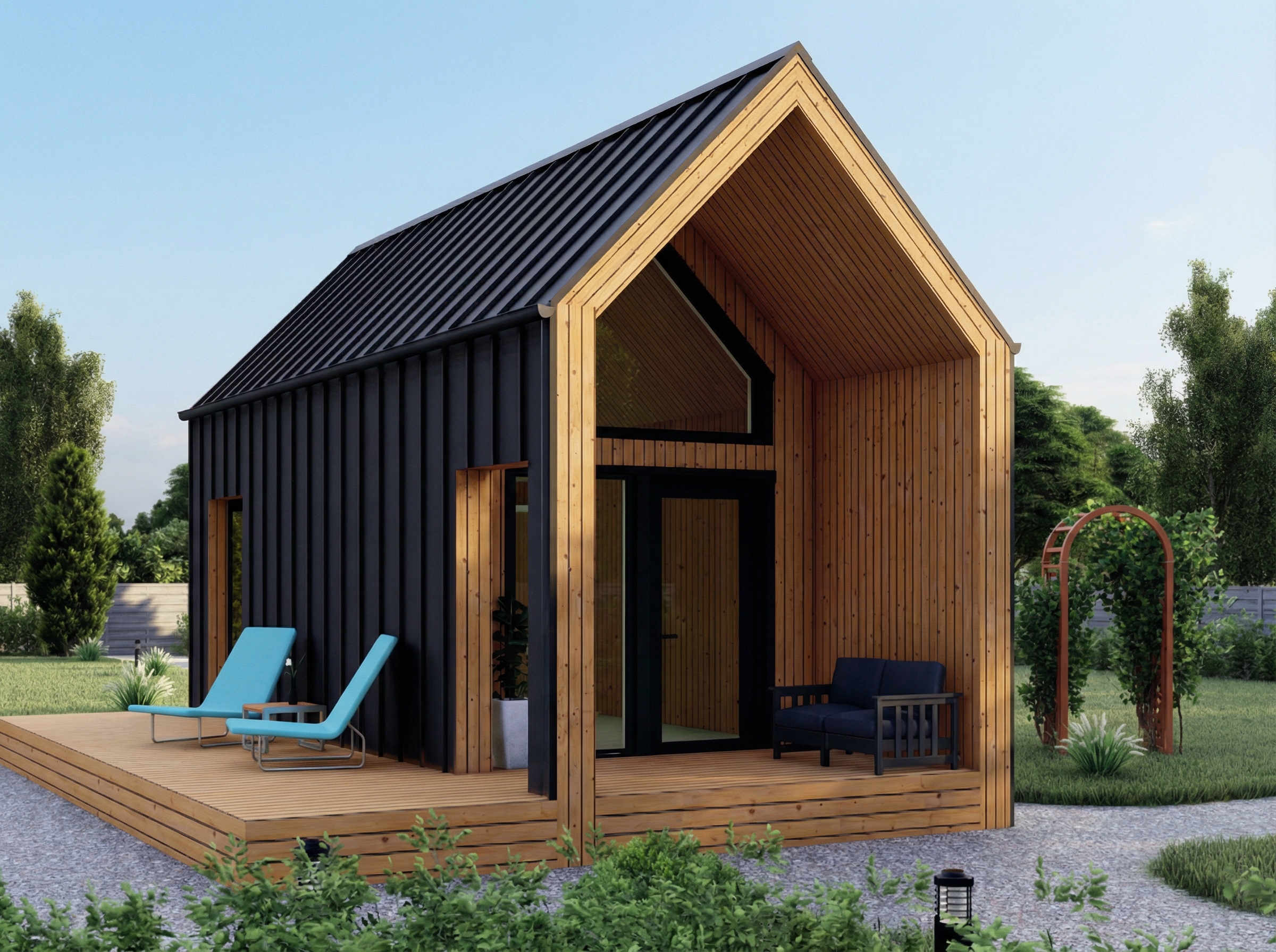 Динамичные формы и большие окна наполняют дом естественным светом, а внешняя стилистика позволяет ему оставаться актуальным в любой локации — на загородном участке, в лесу или даже в современной коттеджной застройке. Лаконичность, технологичность и уютная атмосфера делают этот барнхаус отличным выбором для тех, кто ценит современные тренды и практичный подход к организации компактного жилья.